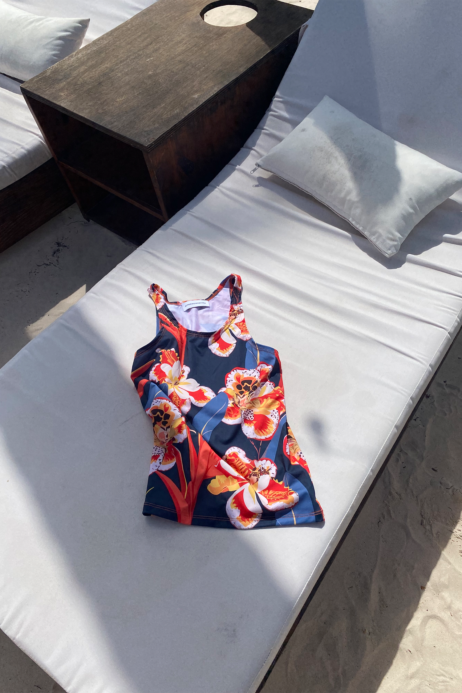 A timeless silhouette crafted in lightweight, quick-drying polyester featuring exclusive reinterpretations of classic vintage prints. This tank top offers a refined fit with soft structure and breathable comfort—perfect for warm-weather elegance or effortless layering. A modern essential with a touch of nostalgic sophistication.